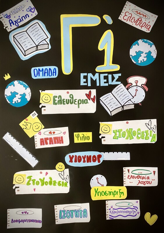Για την υλοποίηση της δράσης διατέθηκαν δύο διδακτικές ώρες. Την πρώτη ώρα έγινε συζήτηση με θέμα τις αξίες τις τάξης αλλά και τα σημεία που είναι αναγκαίο να βελτιώσουν ως άτομα, αλλά και ως ομάδα με σκοπό να λειτουργούν αποτελεσματικότερα. Τη δεύτερη διδακτική ώρα πραγματοποιήθηκε ομαδική κατασκευή τριών αφισών με κεντρικό άξονα τις αξίες των μαθητών ως ομάδα. Οι μαθητές συνεργάστηκαν εξαιρετικά μεταξύ τους.